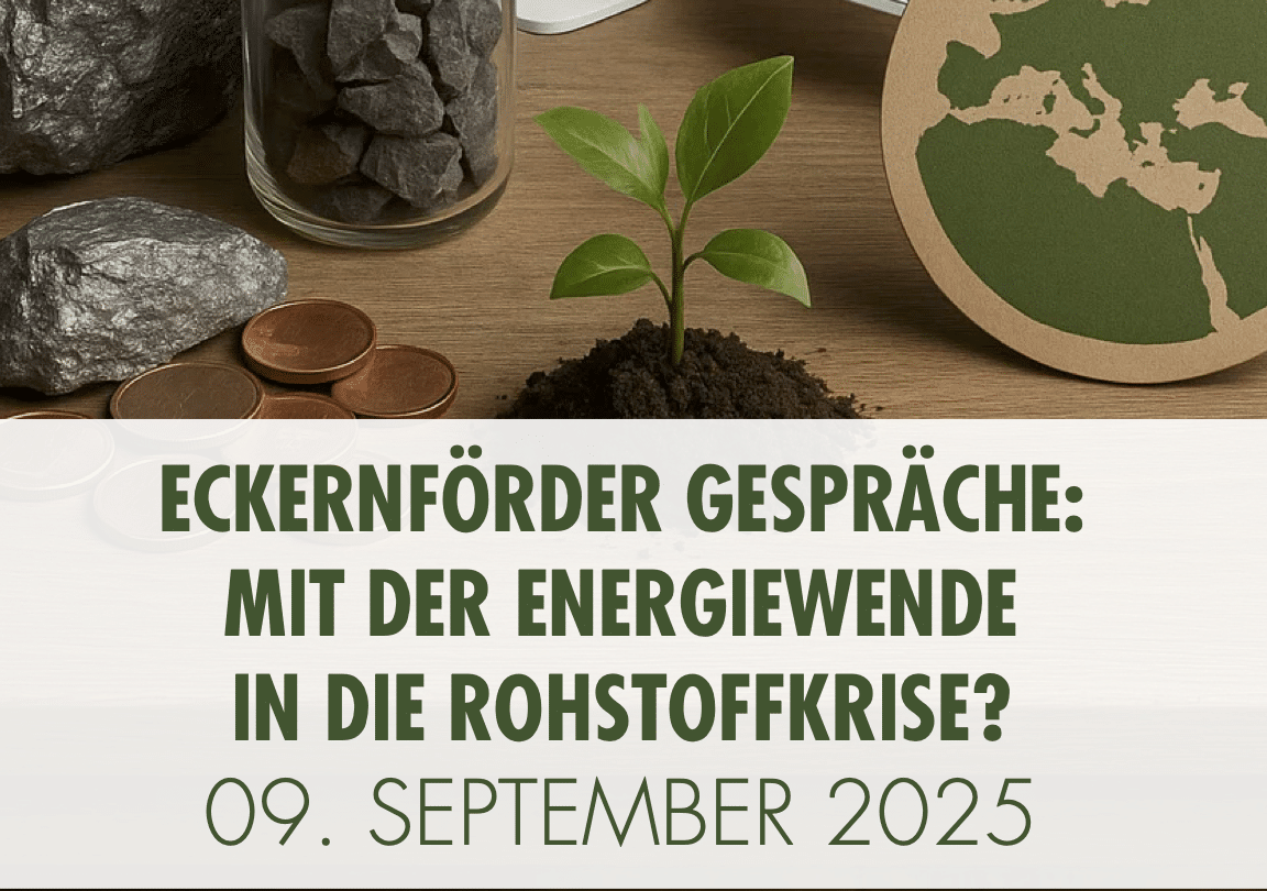 Eckernförder Gespräche am 09. September 2025; Stadthalle Eckernförde; 19h; Eintritt frei: Mit der Energiewende in die Rohstoffkrise?